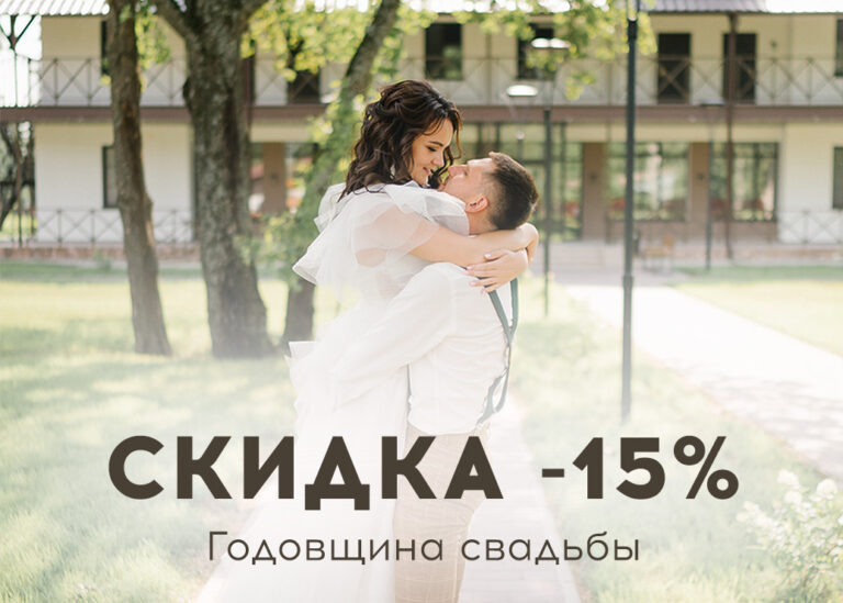 Скидка действует в день годовщины свадьбы и 6 дней после только при предъявлении документа, удостоверяющего заключение брака: свидетельство о браке и/или паспорт со штампом о регистрации брака. Акция не суммируется с другими скидками парк-отеля. Подробности акции уточняйте у администратора ресторана.