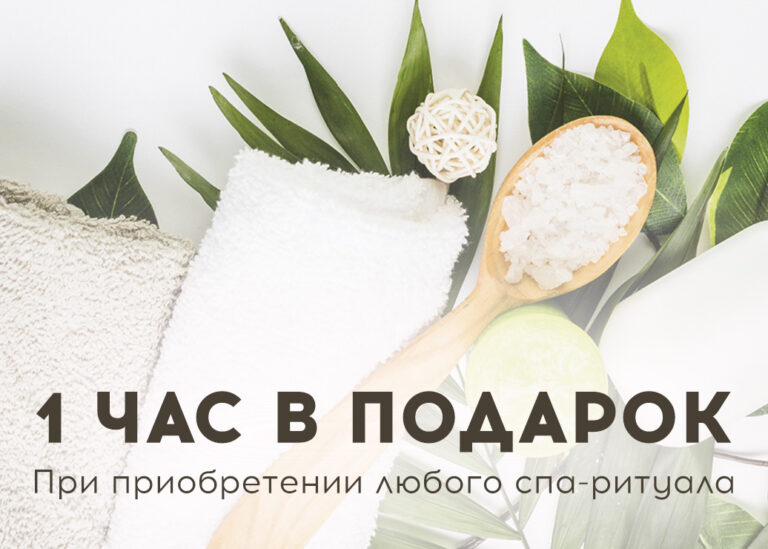 При приобретении любого спа-ритуала для лица и тела — в подарок 1 час посещение акватермальной зоны спа-комплекса (большой внутренний бассейн, уличный подогреваемый бассейн, джакузи, финская сауна, хаммам, русская баня, детская спа-зона)